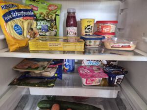 In unserem Kühlschrank war zu Glück noch ordentlich Platz.