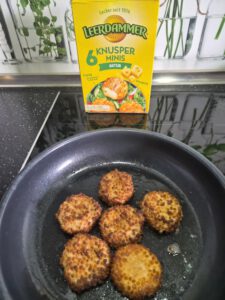 Insgesamt waren in der Packung sechs Minis, die in einer beschichteten Pfanne ( ohne Fett) für knapp 5 Minuten gebraten wurden.