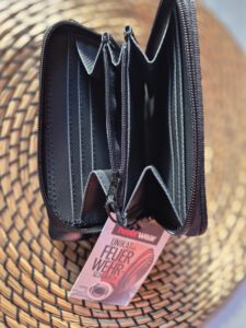 Außen befindet sich das Feuerwear Label, was das Portemonnaie ziert