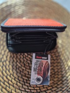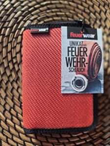 Die robuste Außenseite aus Feuerwehrschlauch schützt den Inhalt vor äußeren Einflüssen und verleiht dem Portemonnaie eine einzigartige Optik.